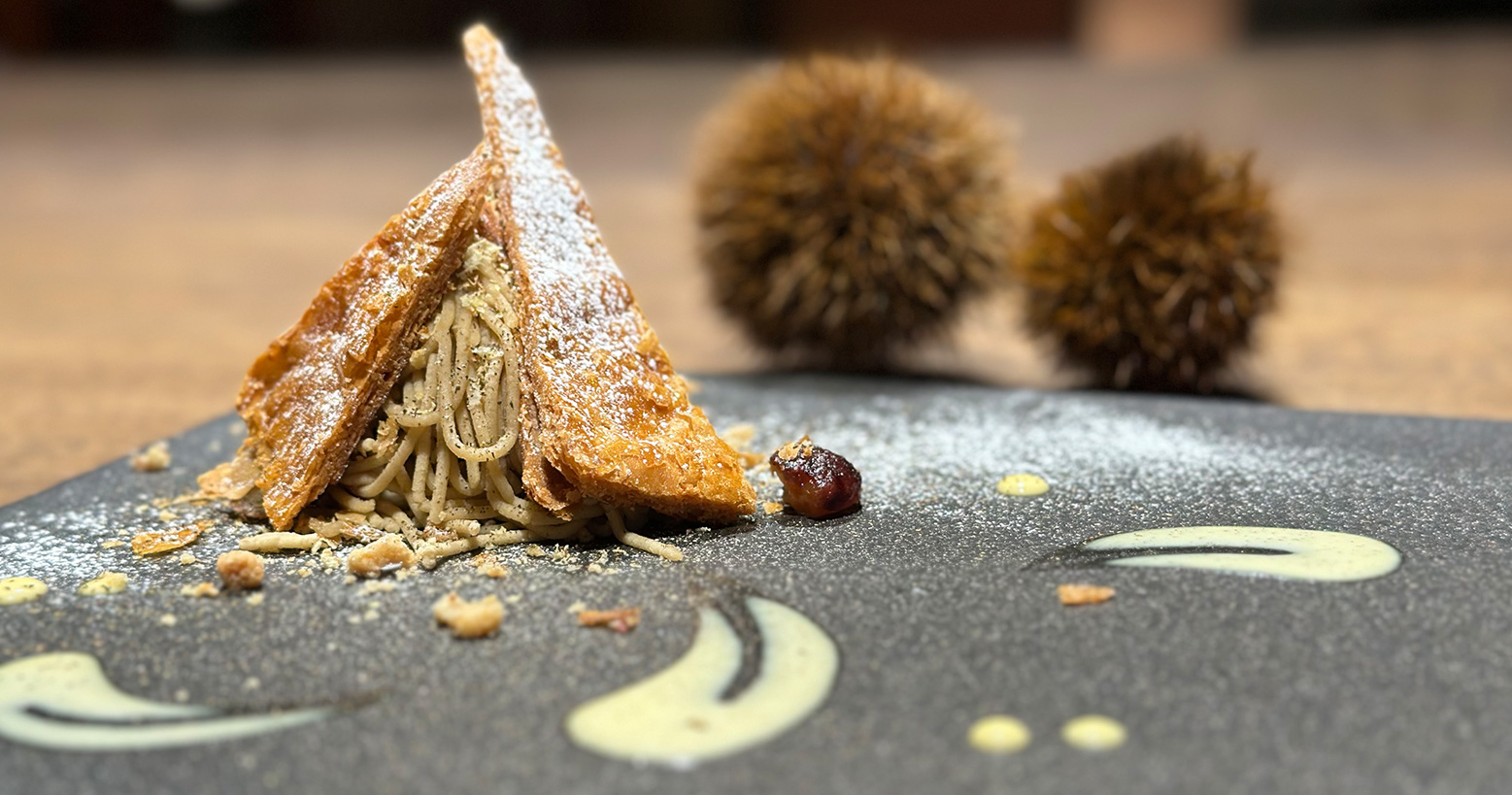 優しい甘さの柿とゆず香るブランマンジェ、サクサク食感の栗のミルフィーユ、とろとろに煮込んだ洋梨のタタンなど。