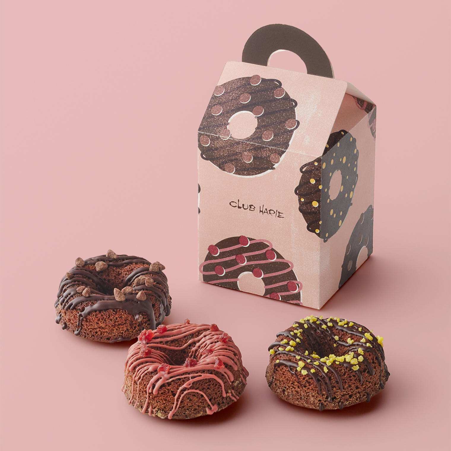 POPにデコレーションした、3種の味わいの焼きドーナツです。