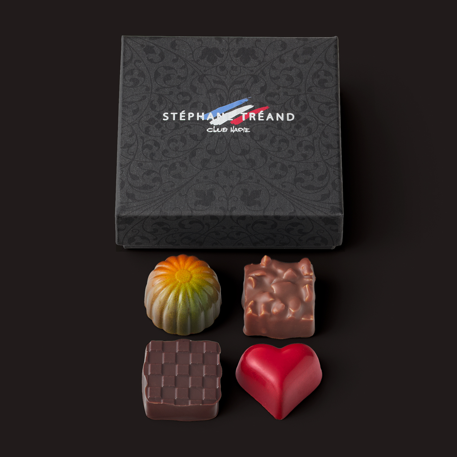 MOFの称号をもつ、ステファン・トレアンの技術と感性で生み出す4種類のボンボンショコラ。