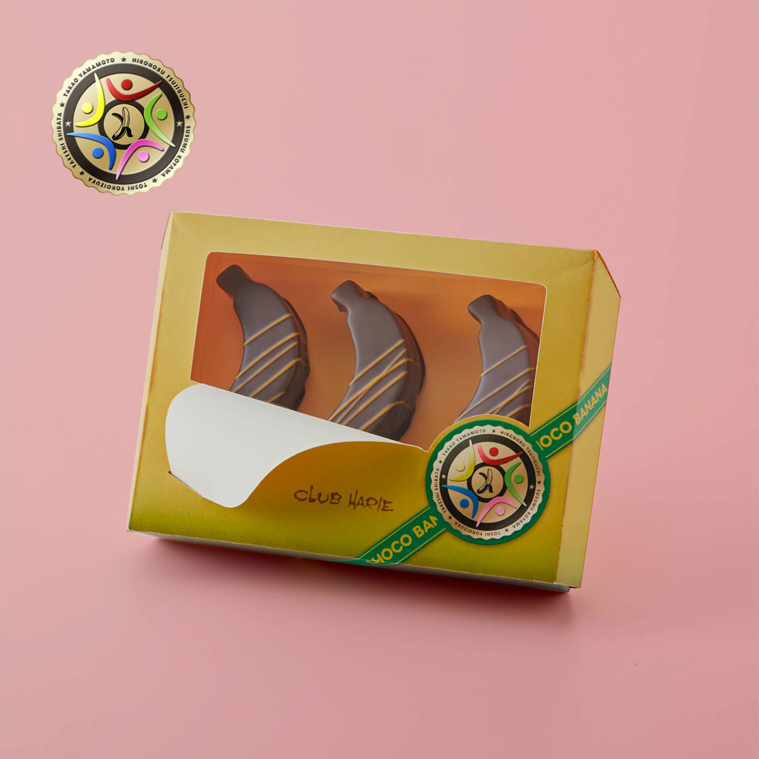 バナナの風味が活きるように火を通し、島バナナの酸味をアクセントに仕上げたクラブハリエの個性あふれるチョコバナナです。