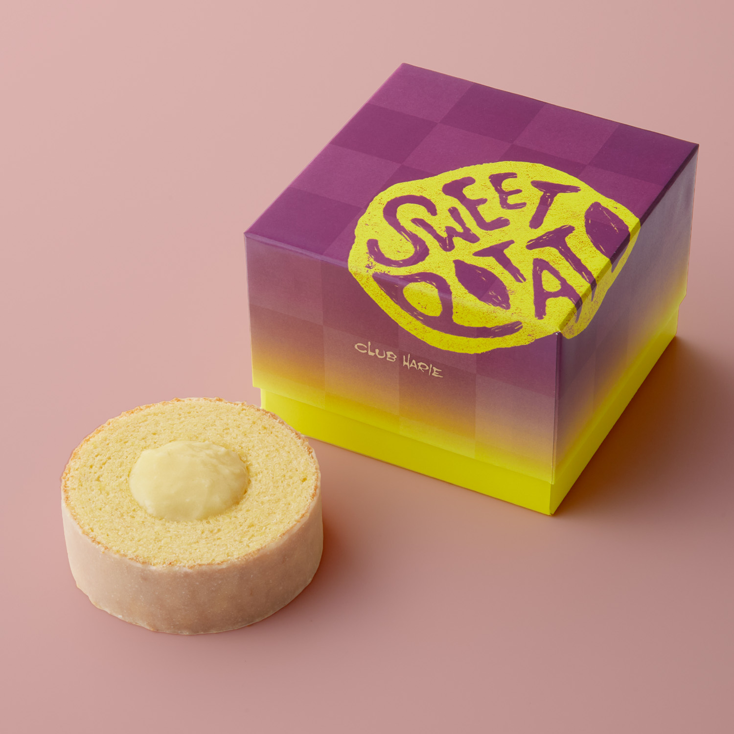 バームクーヘンを使ったサブレ生地の上にラムレーズン入りのクリームチーズ、さらにバターとカスタードクリームの生地をかさね、一番上にそぼろ状のクッキーを合わせたクラブハリエの「アイアシェッケ」。